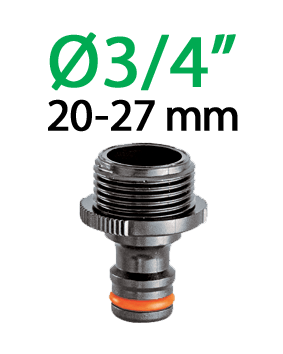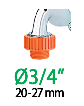 3/4" (20-27 mm) priključek za priklop cevi s kovinskimi pretvorniki za notranje pipe s 22 mm moškim ali 24 mm ženskim navojem. V kompletu je kovinski filter in adapter. "Quick-Click®" spajanje s hitro spojko. Popolnoma vodotesno.