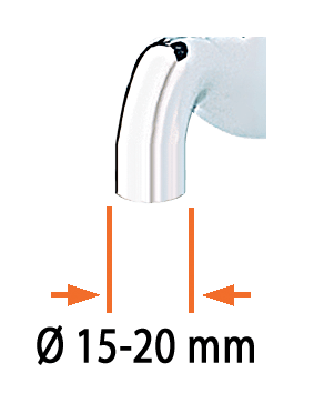 Za pipe z okroglimi izpusti (zunanji Ø min. 15, max. 20 mm). S kovinsko objemko, s katero ga varno pritrdimo na pipo. "Quick-Click®" spajanje s hitro spojko.
