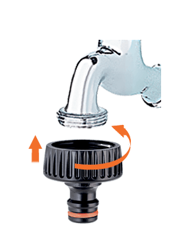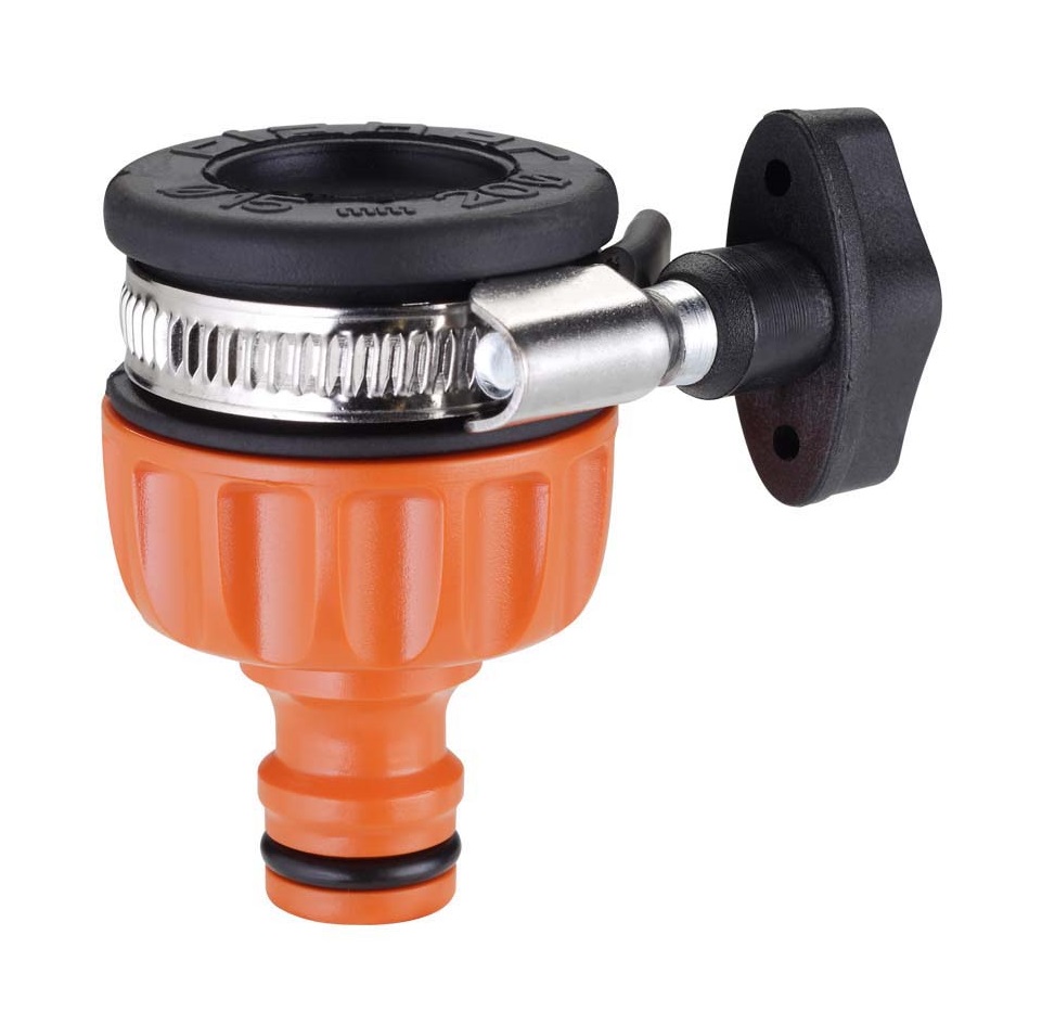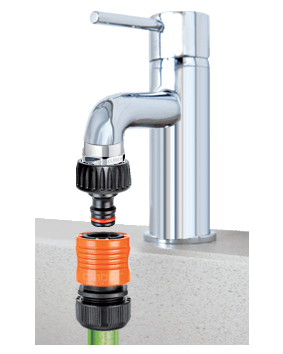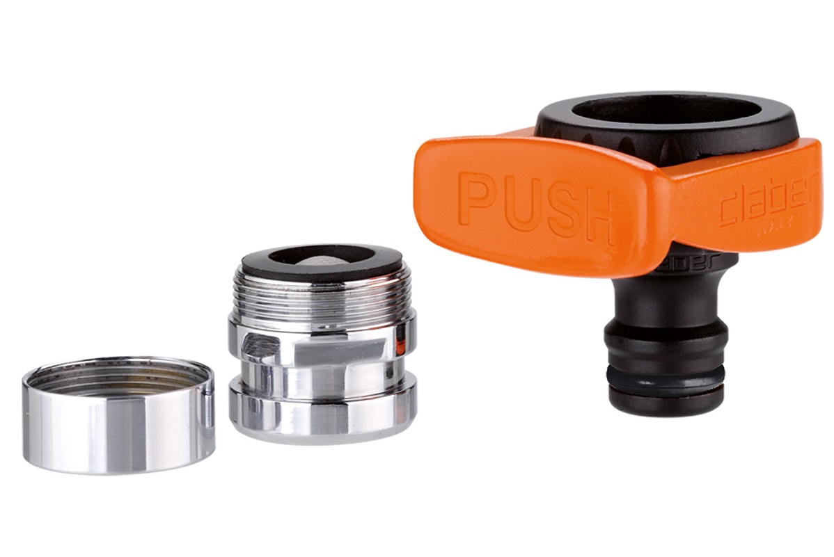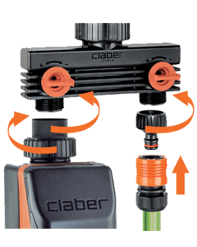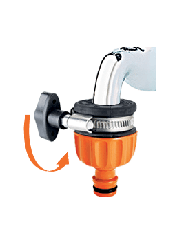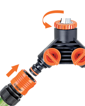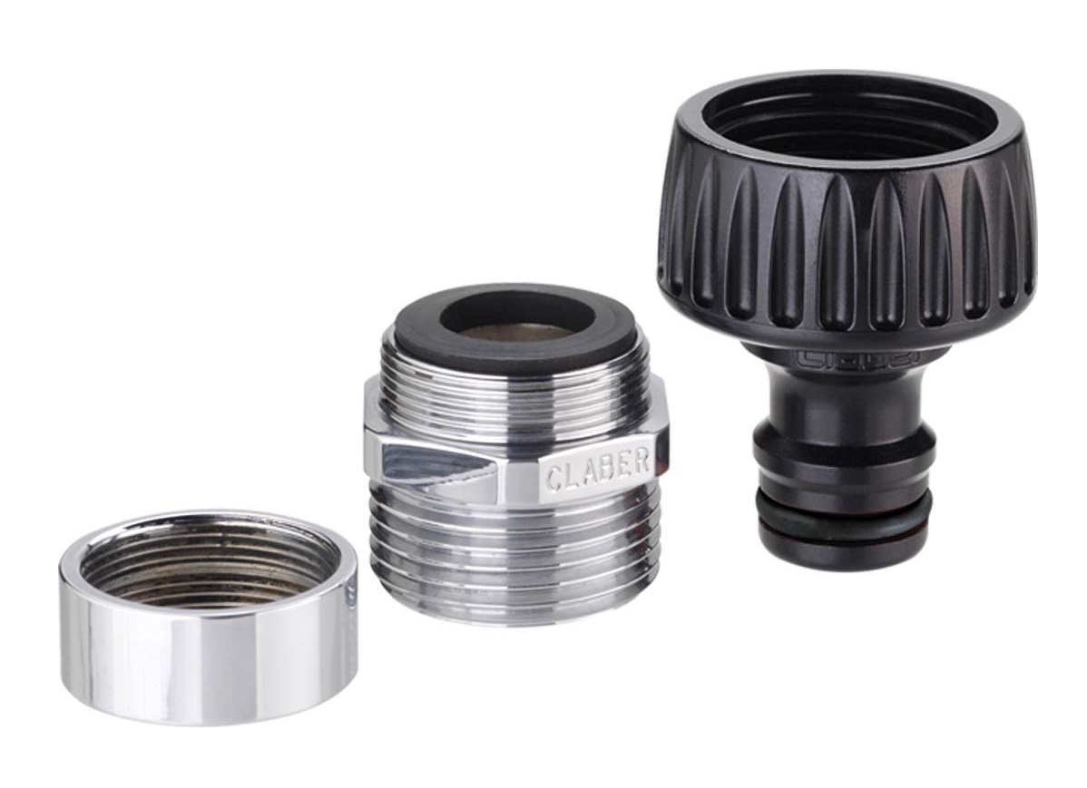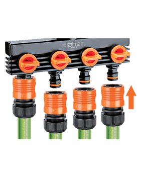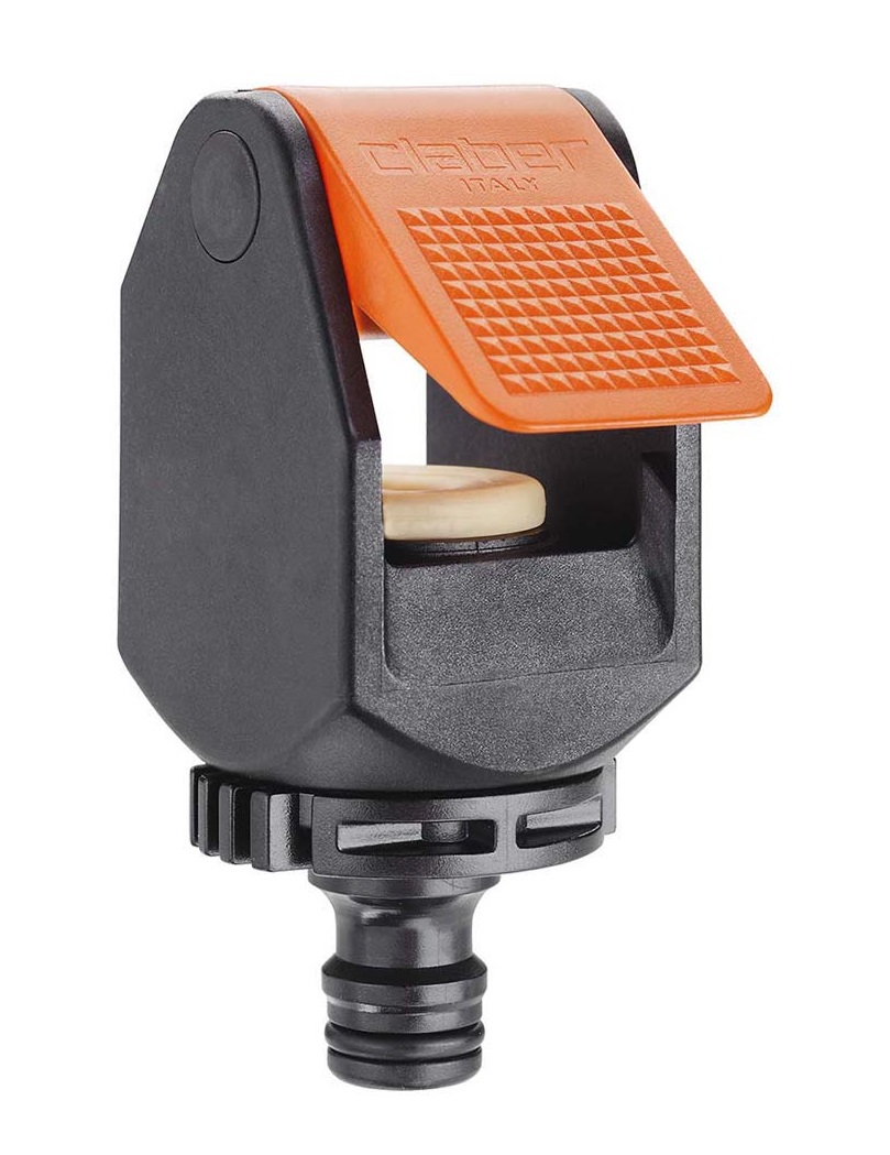 Originalna Claber® ideja za enostavno povezavo vrtne cevi tudi na kvadratne in mešalne pipe. Montaža brez uporabe orodja, zahvaljujoč sistemu vzvoda. Zagotavlja stabilno povezavo brez puščanja. Ergonomska oblika omogoča enostavno in priročno uporabo tudi z mokrimi rokami.