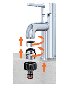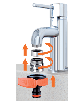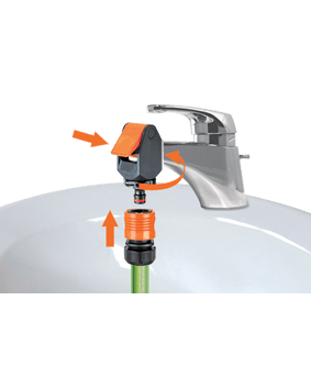 Nastavek za pipo "Koala" je idealen za prenos vode iz notranjih pip do balkonov, ki niso preskrbljeni z vodnimi izhodi. Enostavna namestitev na pipo in popolno tesnjenje. "Quick-Click®" spajanje s hitro spojko.