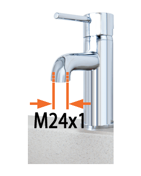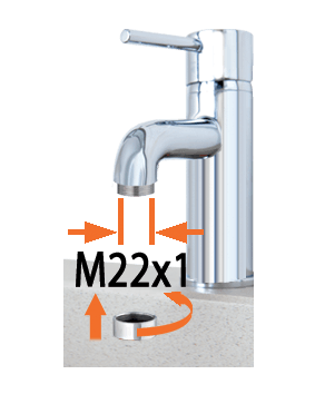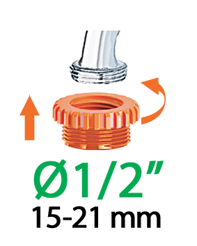 3/4" (20-27 mm) priključek za priklop cevi s kovinskimi pretvorniki za notranje pipe v kuhinji ali kopalnici. Z 22 mm moškim ali 24 mm ženskim navojem. Mehanizem z ročico za hitro namestitev/odstranitev (ni privijanja/odvijanja). V kompletu je kovinski filter in adapter. "Quick-Click®" spajanje s hitro spojko. Popolnoma vodotesno.