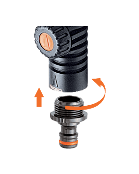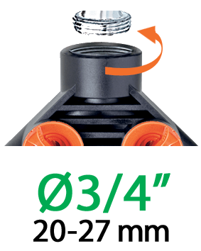 Na 3/4" (20-27 mm) moški navoj lahko priključite poljubni razpršilnik ali dodatek z notranjim 3/4" navojem. "Quick-Click®" spajanje s hitro spojko.