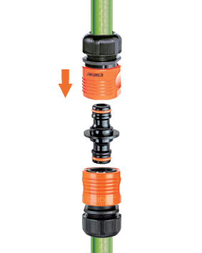 Za popravilo poškodovane vrtne cevi ali za povezavo dveh cevi istega premera. Za 5/8" (not. Ø 14 mm - zun. Ø 19 mm) in 3/4" (not. Ø 19 mm - zun. Ø 25 mm) vrtne cevi.