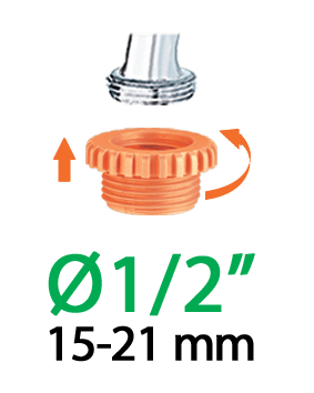 Omogoča uporabo 3/4" priključka s pipami večjega premera. Montaža brez uporabe orodja. Zagotavlja stabilno povezavo brez puščanja. Ergonomska oblika omogoča enostavno in priročno uporabo tudi z mokrimi rokami.