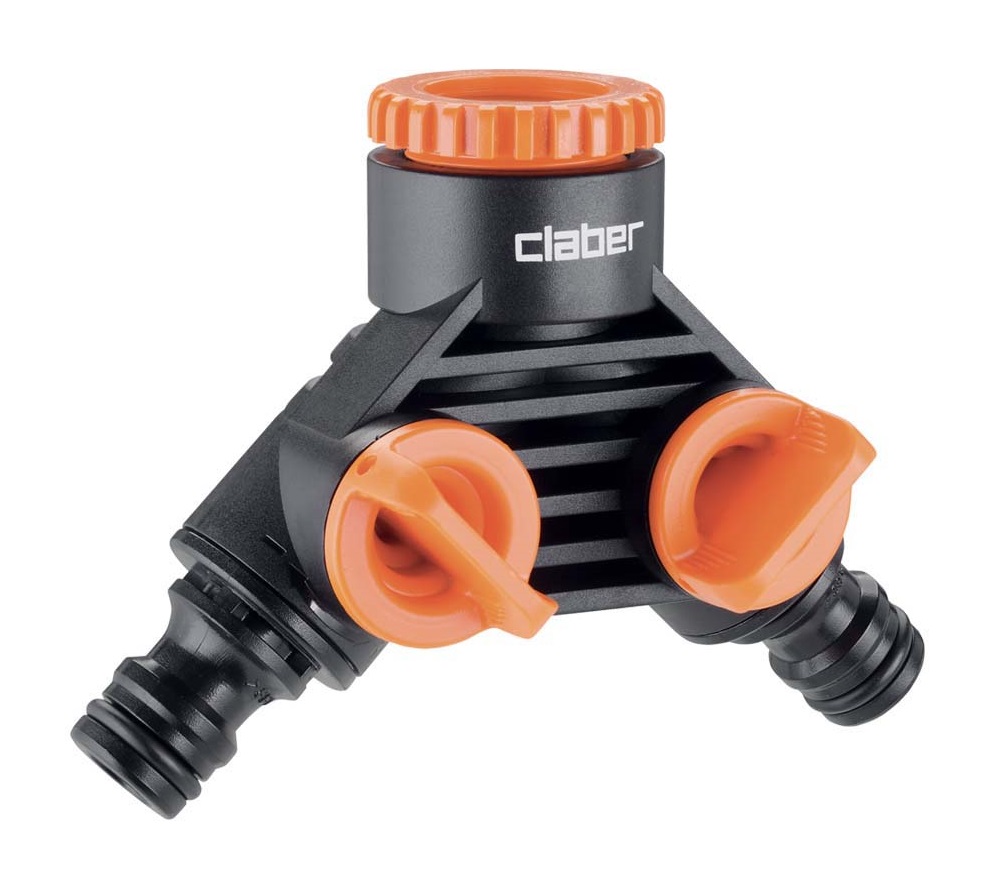 Priključek za pipo z moškim navojem, ki pretvori vodo iz ene pipe v 2 izhoda, kjer je vsak posebej nadzorovan z ventilom za odpiranje/zapiranje pretoka in tako omogoča, da se naenkrat napaja različna območja. Enostavna namestitev na pipo in popolno tesnjenje. Vključuje tesnilo. "Quick-Click®" spajanje s hitrimi spojkami. Priključek za pipo ima 3/4" (20-27 mm) ženski navoj in reducirko s 1/2" (15-21 mm) ženskim navojem.
