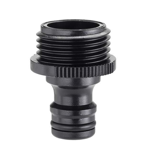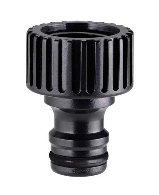 Priključek z nastavljivim zglobom za "Quick-Click®" povezavo hitre spojke na pipo z moškim navojem. Priključek za pipo ima 1" (26-34 mm) ženski navoj in reducirko s 3/4" (20-27 mm) ženskim navojem. Gibljivost za 180° in obračanje za 360° preprečujeta zvijanje in pregibanje vrtne cevi. Enostavna namestitev na pipo in popolno tesnjenje. Vključuje tesnilo.