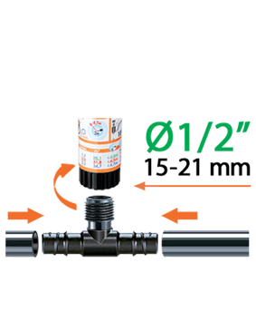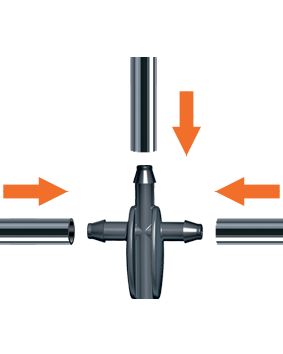 Popolna kakovostna rešitev iz najbolj celovite ponudbe pripomočkov za namakanje na trgu. Za namakalne sisteme, ki jih domači mojstri in vrtnarski navdušenci ustvarjajo sami. Omogoča razvejanje razvodne cevi v obliki črke T.