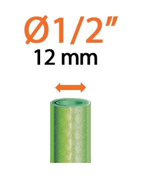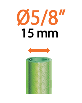 Hitra spojka za vrtne cevi s 1/2" (not. Ø 12 mm - zun. Ø 17 mm) ali 5/8" (not. Ø 14 mm - zun. Ø 19 mm) premerom. Posebna, z gumo prevlečena površina omogoča popoln oprijem. Nerjaveča (brez kovinskih delov) ter odporna na udarce, UV žarke in visok vodni pritisk, vse do 40 barov.