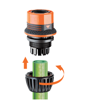 Za popravilo poškodovane vrtne cevi ali za povezavo dveh koncev cevi, tudi če so le-te različnih premerov. Za 1/2" (not. Ø 12 mm - zun. Ø 17 mm), 5/8" (not. Ø 14 mm - zun. Ø 19 mm) in 3/4" (not. Ø 19 mm - zun. Ø 25 mm) cevi.