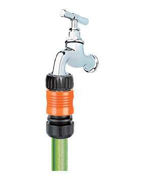 Vse kar potrebujete za povezavo cevi na pipo. Priključek za pipo namestite brez uporabe orodja in zagotavlja odlično povezavo. Hitra spojka je popolnoma nerjaveča (ne vsebuje kovinskih delov), odporna na udarce, zunanje vplive in UV žarke ter odporna na zelo visoke vodne pritiske: do 40 barov, kar je precej večji pritisk, kot je v običajnih domačih vrtnih napeljavah. Notranja vzmet je patentirana, izjemno odporna in z dolgo življenjsko dobo.