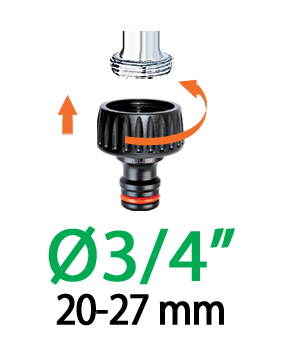 - 3/4" (20-27 mm) priključek za pipo z reducirko iz 3/4" na 1/2" (15-21 mm) ter