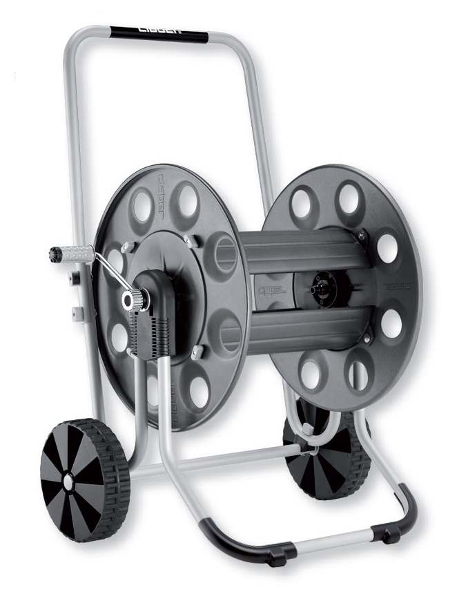 V celoti kovinski voziček za cev zagotavlja popolno vrtenje bobna, saj ima poseben Silent Block mehanizem. Prevlečen je z epoksi smolo, ki ščiti pred rjo. Opremljen je s hitro spojko. Idealen je za uporabo v srednje velikih vrtovih, saj nanj lahko navijete do 85 m 1/2" vrtne cevi.