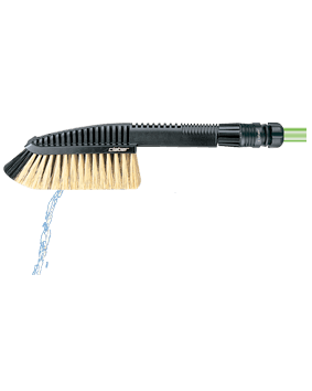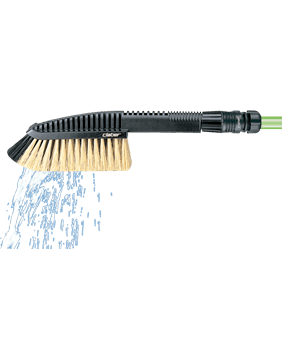 Krtača za pranje z zaobljenimi ščetinami je primerna predvsem za pranje avtomobilov, avtodomov in počitniških prikolic, lahko pa se uporablja tudi za vse vrste čiščenja na prostem, pri čemer izkorišča čisto energijo vode. Opremljena z lahkim, odpornim aluminijastim podaljškom, odpornim proti rji. Tako varno in brez večjega truda dosežete višje predele. Krtača ima na ročaju tudi ročni ventil za regulacijo.
