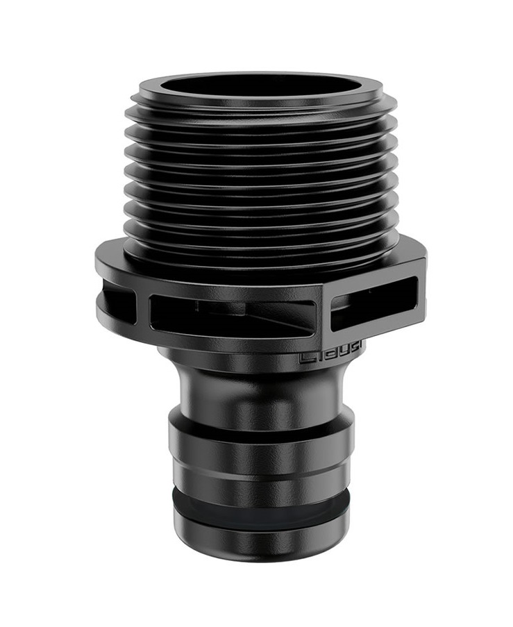 Omogoča enostavno povezavo cevi večjega premera, ki ima na koncu hitro spojko Max-Flow, ter nadzemnega razpršilca/zalivalca na klik. Montaža brez uporabe orodja. Priključek samo navijte v 1" (26-34 mm) ženski izhod na dodatku in ga povežite na hitro spojko Max-Flow. Zagotavlja stabilno povezavo brez puščanja.