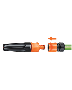 Pripravljeno za uporabo: preprosto dodajte cev in jo priključite na pipo! Vsebuje kompakten in praktičen razpršilec za vodo, ki omogoča enostavno prilagoditev curka, od koncentriranega curka do širokega škropljenja, ter hitro spojko z ventilom Aquastop, ki vam omogoča hitro povezavo ali odstranitev razpršilca, ne da bi za to morali zapreti vodo.
