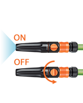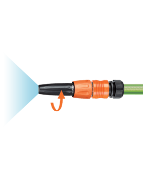 Razpršilec z nastavljivim vodnim curkom: zaprt ali odprt (jet ali razpršeni curek). Curek uravnavate z vrtenjem ergonomskega nastavka na vrhu razpršilca.