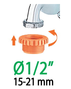 - 3/4" (20-27 mm) priključek za pipo z reducirko iz 3/4" na 1/2" (15-21 mm),