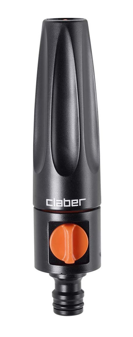Razpršilec z nastavljivim vodnim curkom: zaprt ali odprt (jet ali razpršeni curek). Curek uravnavate z vrtenjem ergonomskega nastavka na vrhu razpršilca. Pretok vode se regulira z ventilom na sprednji strani.