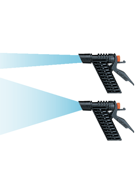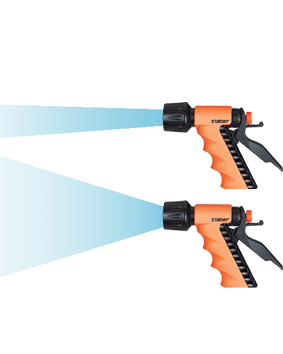 Razpršilna pištola za vodo profesionalne kakovosti, ki zadosti vsem potrebam po zalivanju. Kompaktna in trdna, enostavno in udobno rokovanje. Omogoča nastavljanje vodnega curka v vsakem trenutku in zataknitev izbranega načina pršenja, kjer s posebnim mehanizmom zaklenete položaj nastavitvene ročice, kar preprečuje utrujenost rok, zlasti v primeru daljše uporabe.