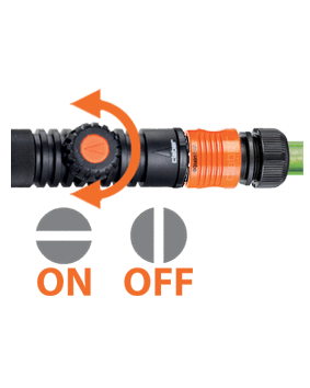 Vse kar potrebujete za učinkovito in udobno zalivanje: edino kar manjka je cev! Vsebuje razpršilno pištolo z ergonomskim ročajem - kompaktna, trdna, enostavna in udobna za uporabo - in mehanizmom s katerim nastavljate vodni curek in zataknete izbrani način zalivanja, kar je zelo koristno, da preprečite utrujenost rok ob daljši uporabi, 3/4" priključek za pipo reducirko na 1/2", ki ga namestite brez uporabe orodja, dve hitri spojki za "Quick-Click®" spajanje, pri čemer je ena klasična, druga pa z ventilom Aquastop, ki vam omogoča hitro povezavo ali odstranitev razpršilca, ne da bi za to morali zapreti vodo.