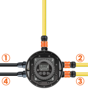Predhodno sestavljen zaboj za ventile z vključeno krmilno enoto. Napajanje na dve 1,5V AAA alkalni bateriji, ki zadostujeta za celotno sezono. Nadzor vklopa/izklopa za do 4 neodvisne podzemne ali nadzemne namakalne linije. Enostavno programiranje z uporabo le treh gumbov. Velik zaslon. Trajanje zalivanja lahko nastavite od 1 minute do 60 minut. 2 programa za vsak izhod. Omogoča do 4 cikle namakanja na dan in tedensko programiranje, kjer lahko določene dni tudi preskočite. Ročna test funkcija (5 minut), ki se spreminja enako kot nastavljeno zalivanje. Popolnoma vodotesna kontrolna enota (IP68) ima zaščitni pokrov in gumijaste gumbe. Programe lahko nastavljate in brišete za vsako linijo posebej.