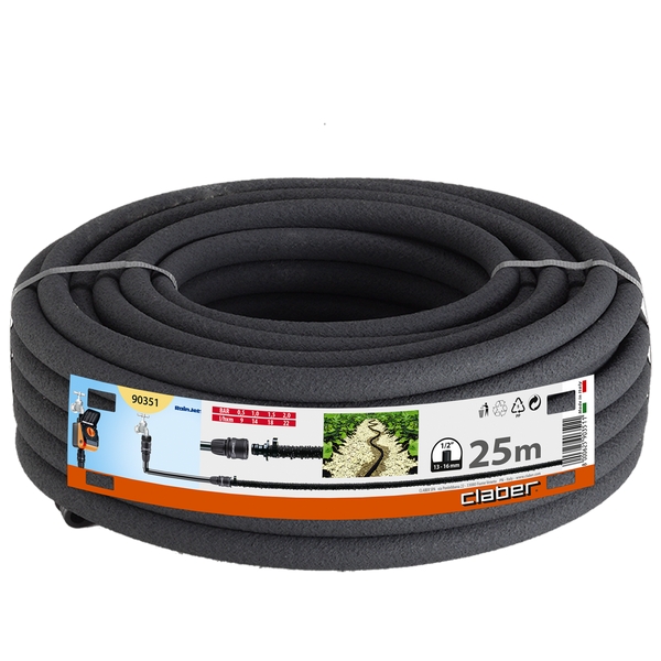 Hitra in enostavna rešitev za zalivanje cvetličnih gredic in grmovnic: voda se na površino cevi dovaja pred nešteto drobnih luknjic in tako zemljo moči postopoma, kar zmanjša izhlapevanje na minimum. Preprosto jo položite na površino in jo povežite na vodo. Izdelana iz visokokakovostnega materiala, odporna na UV žarke in vremenske vplive.