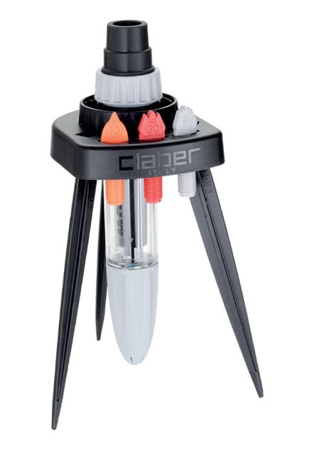 Samodejni kapljalnik za lončnice. Nov koničasti adapter je primeren za navadne plastenke do 2 litra. kompletu s 4 šobami (10 cl, 15 cl, 20 cl in 30 cl). Zelo natančno umerjen, zahvaljujoč posebni napravi za kontroliranje vodnega pretoka. Za dodatno stabilnost, trinožnik preprosto zasidrate v podlago. Izdelek je mogoče pregledati in oprati pod tekočo vodo.