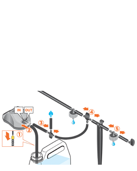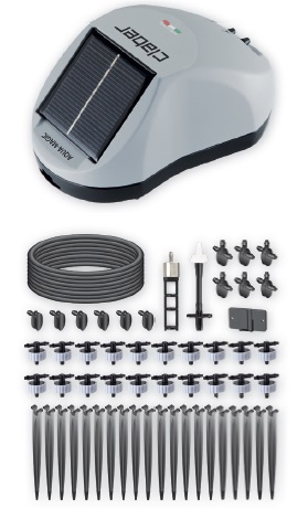 Set za neodvisno kapljično namakanje, ki je pripravljen za takojšnjo uporabo. Set vsebuje krmilno enoto, fotovoltaični panel, vgrajeno črpalko, ki črpa vodo iz rezervoarja, filter ter 20 posebnih samonastavljivih kapljalnikov. Enota je opremljena s pralnim filtrom.