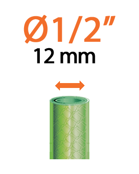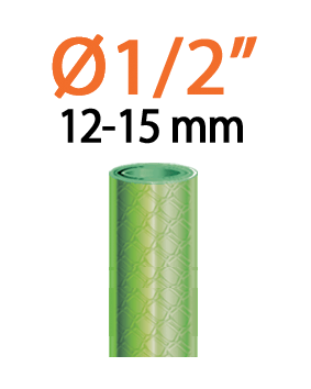 Hitra spojka za vrtne cevi s 1/2" (not. Ø 12 mm - zun. Ø 17 mm) ali 5/8" (not. Ø 14 mm - zun. Ø 19 mm) premerom. Posebna, z gumo prevlečena površina omogoča popoln oprijem. Nerjaveča (brez kovinskih delov) ter odporna na udarce, UV žarke in visok vodni pritisk, vse do 40 barov.