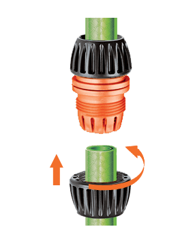 Za popravilo poškodovane vrtne cevi ali za povezavo dveh koncev cevi, tudi če so le-te različnih premerov. Za 1/2" (not. Ø 12 mm - zun. Ø 17 mm), 5/8" (not. Ø 14 mm - zun. Ø 19 mm) in 3/4" (not. Ø 19 mm - zun. Ø 25 mm) cevi.