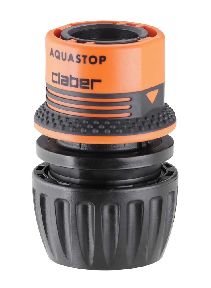 Hitra spojka za vrtne cevi s 1/2" (not. Ø 12 mm - zun. Ø 17 mm) ali 5/8" (not. Ø 14 mm - zun. Ø 19 mm) premerom. Površina je prevlečena s posebno gumo, kar omogoča popoln oprijem. Nerjaveča (brez kovinskih delov) ter odporna na udarce, UV žarke in visok vodni pritisk, vse do 40 barov. Vključuje avtomatski ventil za zaustavljanje vode. Namesti se na koncu cevi, da prepreči izlivanje vode po končani uporabi.