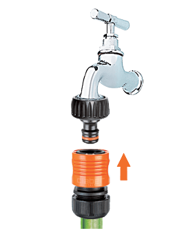 Vse kar potrebujete za povezavo cevi na pipo. Priključek za pipo namestite brez uporabe orodja in zagotavlja odlično povezavo. Hitra spojka je popolnoma nerjaveča (ne vsebuje kovinskih delov), odporna na udarce, zunanje vplive in UV žarke ter odporna na zelo visoke vodne pritiske: do 40 barov, kar je precej večji pritisk, kot je v običajnih domačih vrtnih napeljavah. Notranja vzmet je patentirana, izjemno odporna in z dolgo življenjsko dobo.