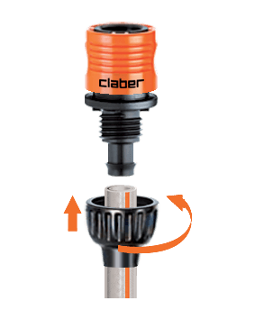 Hitra spojka za hitro in popolno povezavo. Izdelek je rezultat Claber® raziskav in izkušenj. Spojka je popolnoma nerjaveča (ne vsebuje kovinskih delov), odporna na udarce, zunanje vplive in UV žarke ter odporna na zelo visoke vodne pritiske: do 40 barov, kar je precej večji pritisk, kot je v običajnih domačih vrtnih napeljavah. Notranja vzmet je patentirana, izjemno odporna in z dolgo življenjsko dobo.