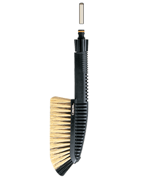 Krtača za pranje z zaobljenimi ščetinami je primerna predvsem za pranje avtomobilov, avtodomov in počitniških prikolic, lahko pa se uporablja tudi za vse vrste čiščenja na prostem, pri čemer izkorišča čisto energijo vode. Opremljena z lahkim, odpornim aluminijastim podaljškom, odpornim proti rji. Tako varno in brez večjega truda dosežete višje predele. Krtača ima na ročaju tudi ročni ventil za regulacijo.