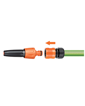 Pripravljeno za uporabo: preprosto dodajte cev in jo priključite na pipo! Vsebuje kompakten in praktičen razpršilec za vodo, ki omogoča enostavno prilagoditev curka, od koncentriranega curka do širokega škropljenja, ter hitro spojko z ventilom Aquastop, ki vam omogoča hitro povezavo ali odstranitev razpršilca, ne da bi za to morali zapreti vodo.