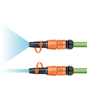 Razpršilec z nastavljivim vodnim curkom: zaprt ali odprt (jet ali razpršeni curek). Curek uravnavate z vrtenjem ergonomskega nastavka na vrhu razpršilca.