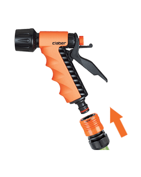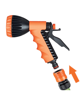 Razpršilna pištola za vodo z ergonomskim ročajem, ki zadosti vsem potrebam po zalivanju. Kompaktna in trdna, enostavno in udobno rokovanje. Omogoča nastavljanje vodnega curka v vsakem trenutku in zataknitev izbranega načina pršenja, kjer s posebnim mehanizmom zaklenete položaj nastavitvene ročice, kar preprečuje utrujenost rok, zlasti v primeru daljše uporabe.