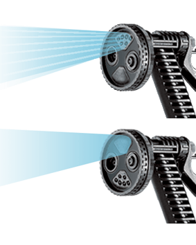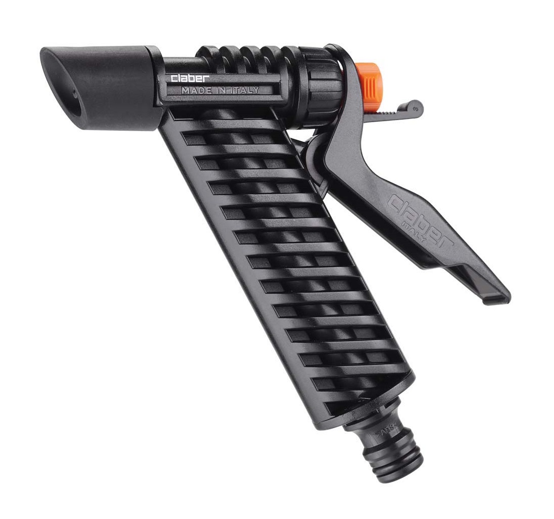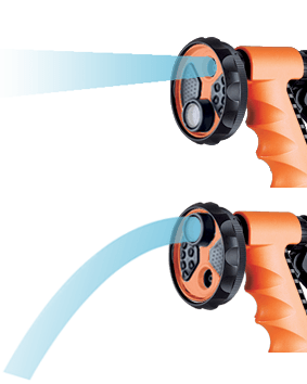 Razpršilna pištola za vodo profesionalne kakovosti, ki zadosti vsem potrebam po zalivanju. Kompaktna in trdna, enostavno in udobno rokovanje. Omogoča nastavljanje vodnega curka v vsakem trenutku in zataknitev izbranega načina pršenja, kjer s posebnim mehanizmom zaklenete položaj nastavitvene ročice, kar preprečuje utrujenost rok, zlasti v primeru daljše uporabe.