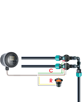 Praktična in zanesljiva rešitev za upravljanje podzemnih namakalnih sistemov. Upravlja lahko 1 ali 2 9V elektromagnetna ventila. Ne potrebuje povezave na električno omrežje. Namesti se jo lahko znotraj zaboja za ventile ali na steno, tako da je programiranje še bolj priročno. Ima velik LCD zaslon. Z uporabo le 3 gumbov lahko izberete trajanje namakanja med 1 minuto in 23 ur 59 minut. Možnost zagona cikla do 6-krat dnevno. Po želji lahko določene dneve tudi izpustite (t.i. tedensko programiranje). Lahko se poveže na senzor za dež, ki bo poskrbel, da bo namakanje potekalo brez nepotrebnih izgub vode.